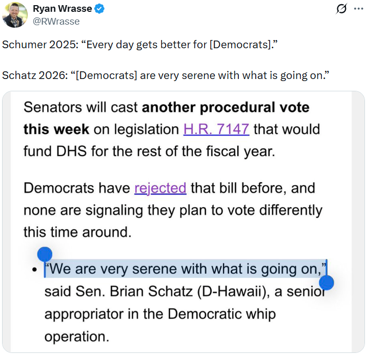 댓글 불러오는 중... - Mar 11, 2026, 01:23 PM[EN] 4-hour TSA lines because Democrats won’t fund the Department of Homeland Security.“Very serene.” [KO] 민주당이 국토안보부에 자금을 지원하지 않기 때문에 4시간 TSA 전화."매우 조용합니다."💬 13🔁 118⭐ 197