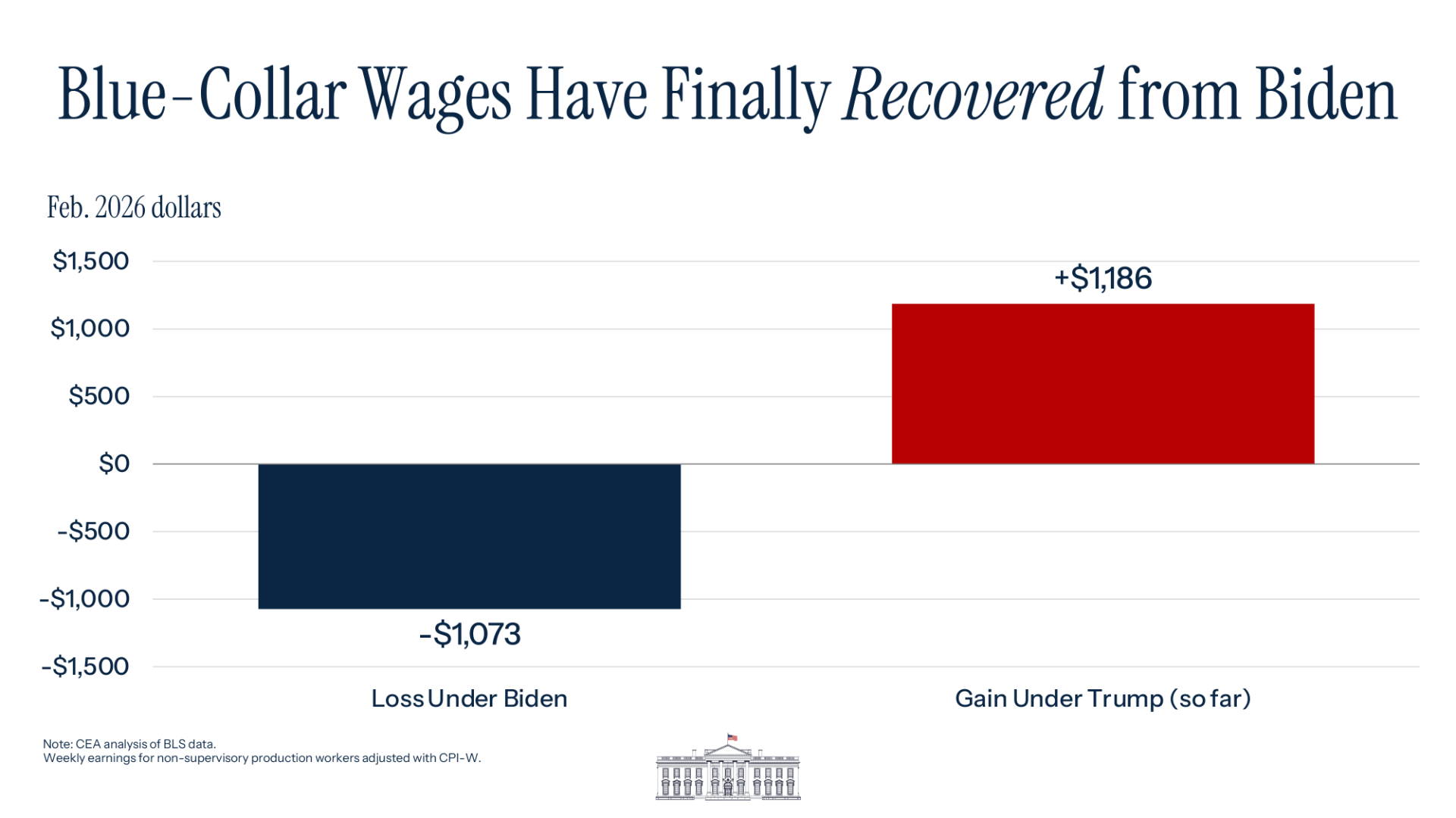 댓글 불러오는 중... - Mar 11, 2026, 01:58 PM[EN] In just one year under President Trump, blue-collar workers have made up all the wages they lost under Biden.More progress. More to come. [KO] 트럼프 대통령 집권 후 단 1년 만에 생산직 노동자들이 바이든 집권 하에서 잃은 임금을 모두 보상했습니다. 더 많은 진전이 있습니다. 앞으로 더 많은 것이 나올 것입니다.💬 2🔁 120⭐ 262