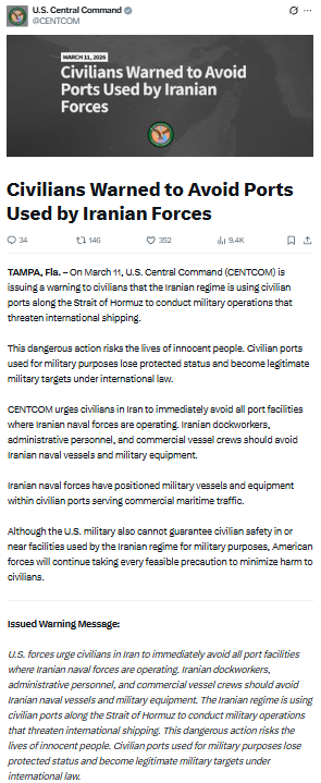 댓글 불러오는 중... - Mar 11, 2026, 01:20 PM[EN] 🚨 𝟑 𝐒𝐡𝐢𝐩𝐬 𝐇𝐢𝐭 𝐛𝐲 𝐏𝐫𝐨𝐣𝐞𝐜𝐭𝐢𝐥𝐞𝐬 𝐢𝐧 𝐒𝐭𝐫𝐚𝐢𝐭 𝐨𝐟 𝐇𝐨𝐫𝐦𝐮𝐳One vessel caught fire and crews evacuated after overnight strikes on cargo ships, underscoring mounting threats to global shipping routes amid the Iran war.Read here:https://theepochtim.es/yu17qe [KO] 🚨 호르무즈 해협에서 발사체에 맞은 선박 3척 화물선에 밤새 공격을 가한 후 한 척의 선박에 화재가 발생하고 승무원이 대피했습니다. 이는 이란 전쟁 중 전 세계 운송 경로에 대한 위협이 커지고 있음을 강조합니다.여기를 읽어보세요: https://theepochtim.es/yu17qe💬 7🔁 29⭐ 69