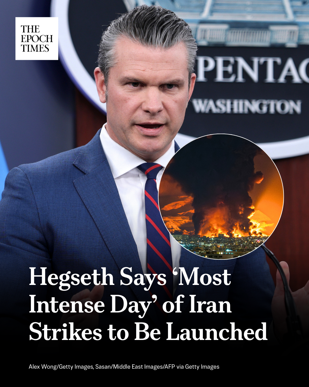 댓글 불러오는 중... - Mar 10, 2026, 05:45 PM[EN] 🚨 𝐇𝐞𝐠𝐬𝐞𝐭𝐡 𝐒𝐚𝐲𝐬 ‘𝐌𝐨𝐬𝐭 𝐈𝐧𝐭𝐞𝐧𝐬𝐞 𝐃𝐚𝐲’ 𝐨𝐟 𝐈𝐫𝐚𝐧 𝐒𝐭𝐫𝐢𝐤𝐞𝐬 𝐭𝐨 𝐁𝐞 𝐋𝐚𝐮𝐧𝐜𝐡𝐞𝐝It comes as Iran launched new attacks on Israel and Gulf countries on Tuesday.Read more👇https://theepochtim.es/1tyt3v [KO] 🚨 헤그세스는 이란 공격의 '가장 격렬한 날'이 시작될 것이라고 말했습니다. 이란이 화요일에 이스라엘과 걸프 국가에 대한 새로운 공격을 시작하면서 다가왔습니다.자세히 보기👇 https://theepochtim.es/1tyt3v💬 19🔁 58⭐ 159