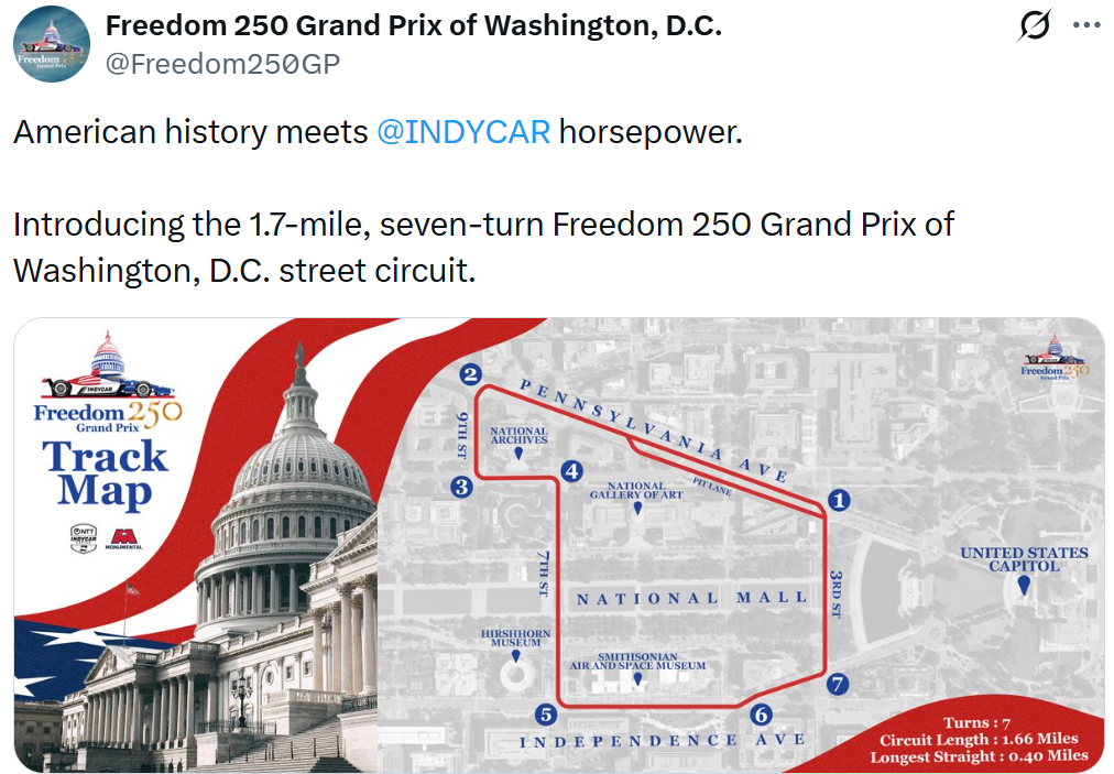 댓글 불러오는 중... - Mar 09, 2026, 04:50 PM[EN] Interior Secretary Doug Burgum, @SecDuffy, Ambassador @MonicaCrowley, and D.C. Mayor Muriel Bowser unveil the Freedom 250 IndyCar ahead of the Freedom 250 Grand Prix in Washington, D.C. this summer 🇺🇸 [KO] Doug Burgum 내무장관, @SecDuffy, @MonicaCrowley 대사, Muriel Bowser D.C. 시장이 올여름 워싱턴 D.C.에서 열리는 Freedom 250 Grand Prix를 앞두고 Freedom 250 IndyCar를 공개합니다 🇺🇸💬 6🔁 73⭐ 176