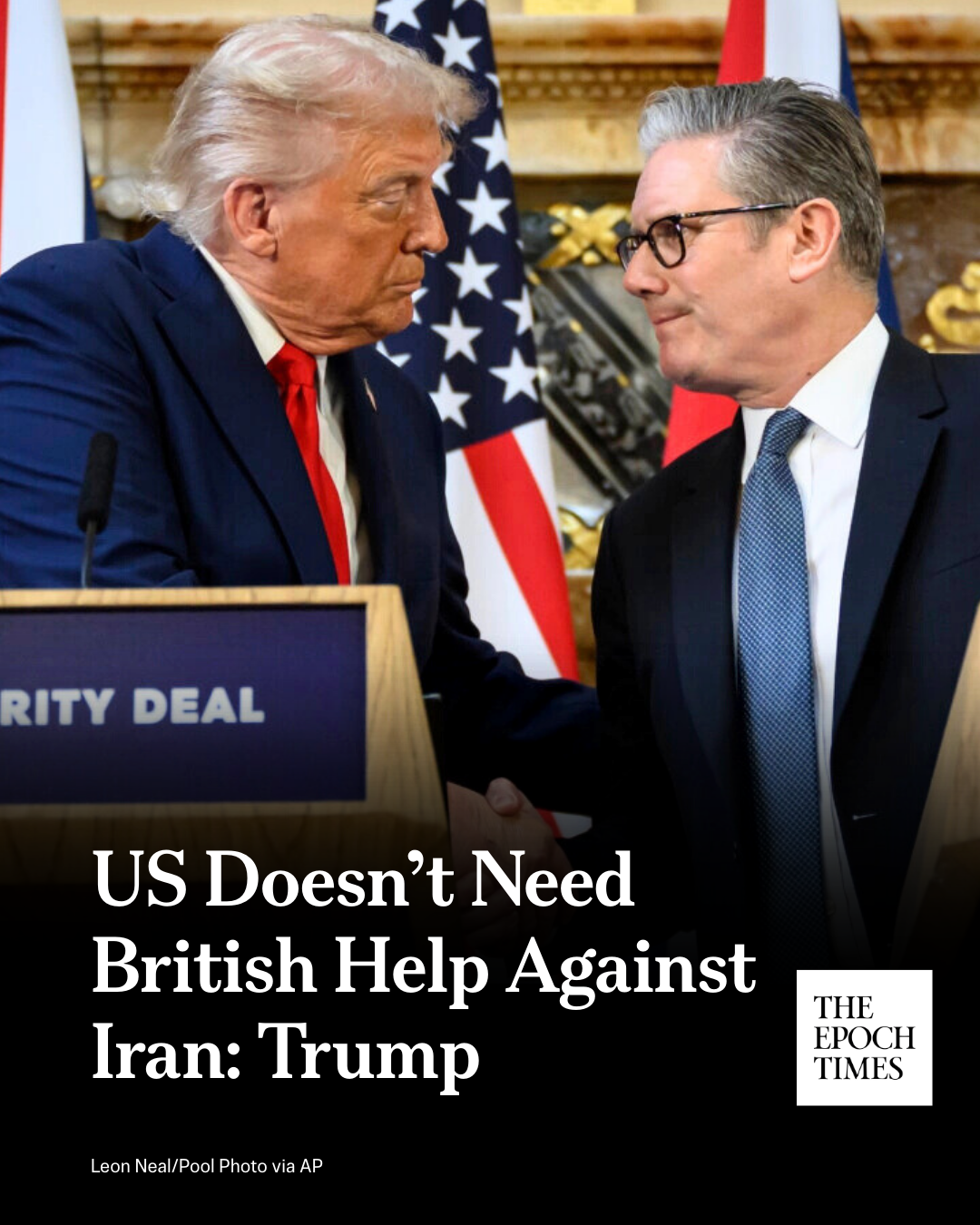 댓글 불러오는 중... - Mar 08, 2026, 04:25 PM[EN] 🚨 𝐔𝐒 𝐃𝐨𝐞𝐬𝐧’𝐭 𝐍𝐞𝐞𝐝 𝐁𝐫𝐢𝐭𝐢𝐬𝐡 𝐇𝐞𝐥𝐩 𝐀𝐠𝐚𝐢𝐧𝐬𝐭 𝐈𝐫𝐚𝐧: 𝐓𝐫𝐮𝐦𝐩Trump blamed the UK Prime Minister earlier this week for ruining America and the UK’s historically close relationship.Read more👇https://theepochtim.es/vrg3i7 [KO] 🚨 미국은 이란에 대해 영국의 도움이 필요하지 않습니다: 트럼프 트럼프는 이번 주 초 미국과 영국의 역사적으로 긴밀한 관계를 망친 것에 대해 영국 총리를 비난했습니다. 더 읽기👇 https://theepochtim.es/vrg3i7💬 94🔁 137⭐ 567