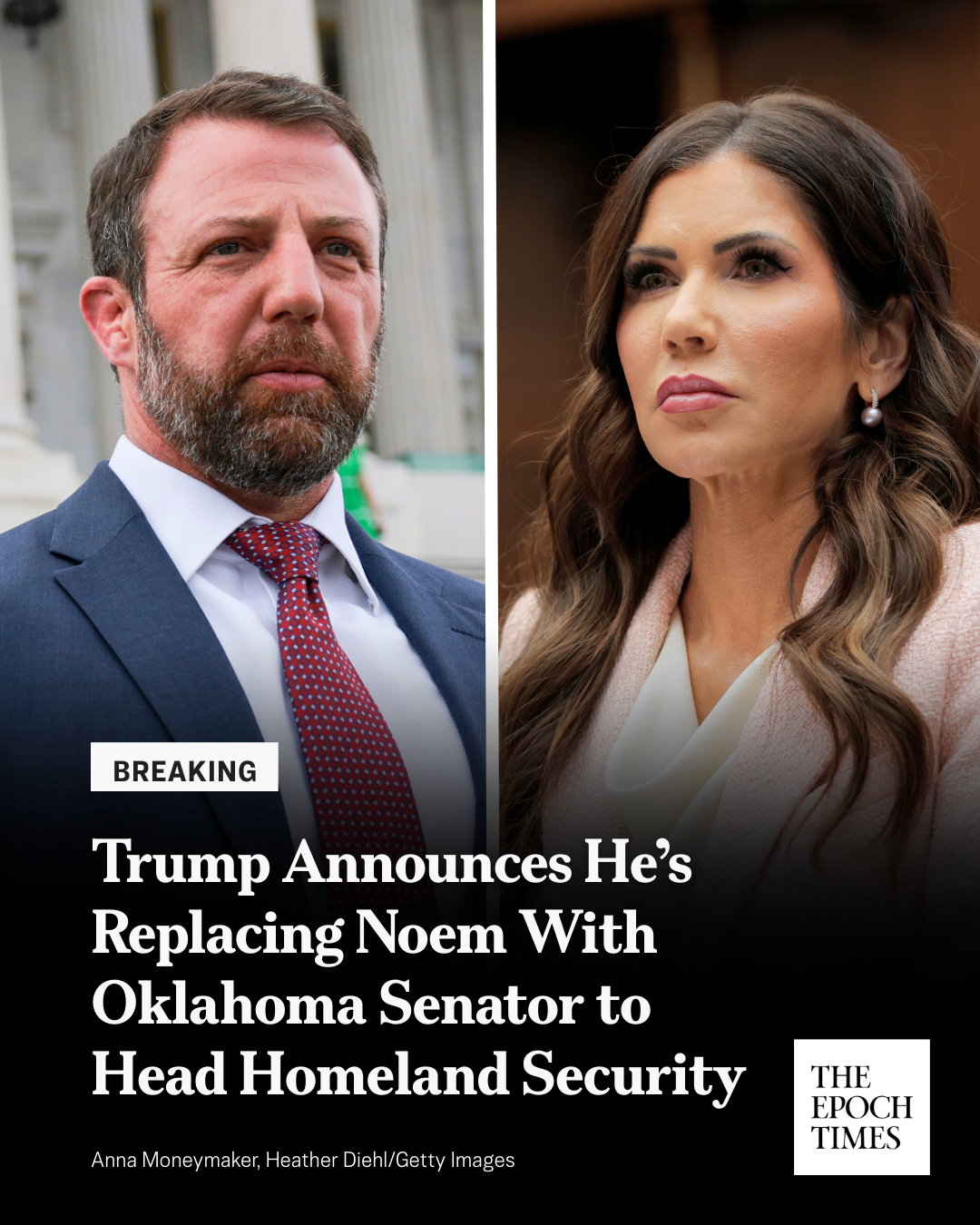 댓글 불러오는 중... - Mar 05, 2026, 09:25 PM[EN] 🚨 𝐁𝐑𝐄𝐀𝐊𝐈𝐍𝐆: 𝐓𝐫𝐮𝐦𝐩 𝐀𝐧𝐧𝐨𝐮𝐧𝐜𝐞𝐬 𝐇𝐞’𝐬 𝐑𝐞𝐩𝐥𝐚𝐜𝐢𝐧𝐠 𝐍𝐨𝐞𝐦 𝐖𝐢𝐭𝐡 𝐎𝐤𝐥𝐚𝐡𝐨𝐦𝐚 𝐒𝐞𝐧𝐚𝐭𝐨𝐫 𝐭𝐨 𝐇𝐞𝐚𝐝 𝐇𝐨𝐦𝐞𝐥𝐚𝐧𝐝 𝐒𝐞𝐜𝐮𝐫𝐢𝐭𝐲Kristi Noem, the president said, would be moving to a special envoy position and will be replaced by Sen. Markwayne Mullin.Read more👇https://theepochtim.es/0aek3n [KO] 🚨 속보: 트럼프는 노엠을 국토안보부 수장으로 오클라호마 상원의원으로 교체한다고 발표했습니다. 대통령은 크리스티 노엠이 특사로 자리를 옮길 것이며 마크웨인 멀린 상원의원이 교체될 것이라고 말했습니다.자세히 보기👇 https://theepochtim.es/0aek3n💬 38🔁 39⭐ 176