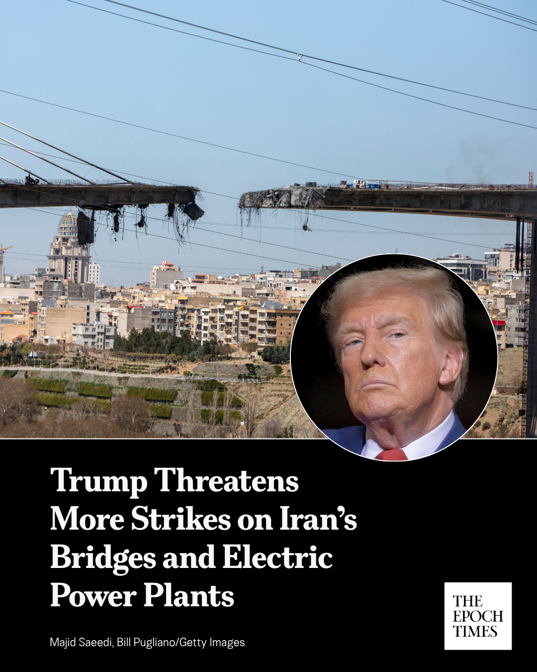 댓글 불러오는 중... - Apr 03, 2026, 09:45 PM[EN] 🚨 𝐓𝐫𝐮𝐦𝐩 𝐓𝐡𝐫𝐞𝐚𝐭𝐞𝐧𝐬 𝐌𝐨𝐫𝐞 𝐒𝐭𝐫𝐢𝐤𝐞𝐬 𝐨𝐧 𝐈𝐫𝐚𝐧’𝐬 𝐁𝐫𝐢𝐝𝐠𝐞𝐬 𝐚𝐧𝐝 𝐄𝐥𝐞𝐜𝐭𝐫𝐢𝐜 𝐏𝐨𝐰𝐞𝐫 𝐏𝐥𝐚𝐧𝐭𝐬Earlier Thursday, Trump posted a video showing U.S. forces destroying sections of a major bridge running near the Iranian capital city of Tehran.Read more👇https://theepochtim.es/ko6lbc [KO] 🚨 트럼프는 이란의 교량과 발전소에 대한 추가 공격을 위협했습니다. 목요일 오전, 트럼프는 미군이 이란의 수도 테헤란 근처를 달리는 주요 교량의 일부를 파괴하는 모습을 보여주는 비디오를 게시했습니다. 자세히보기👇 https://theepochtim.es/ko6lbc💬 19🔁 58⭐ 205