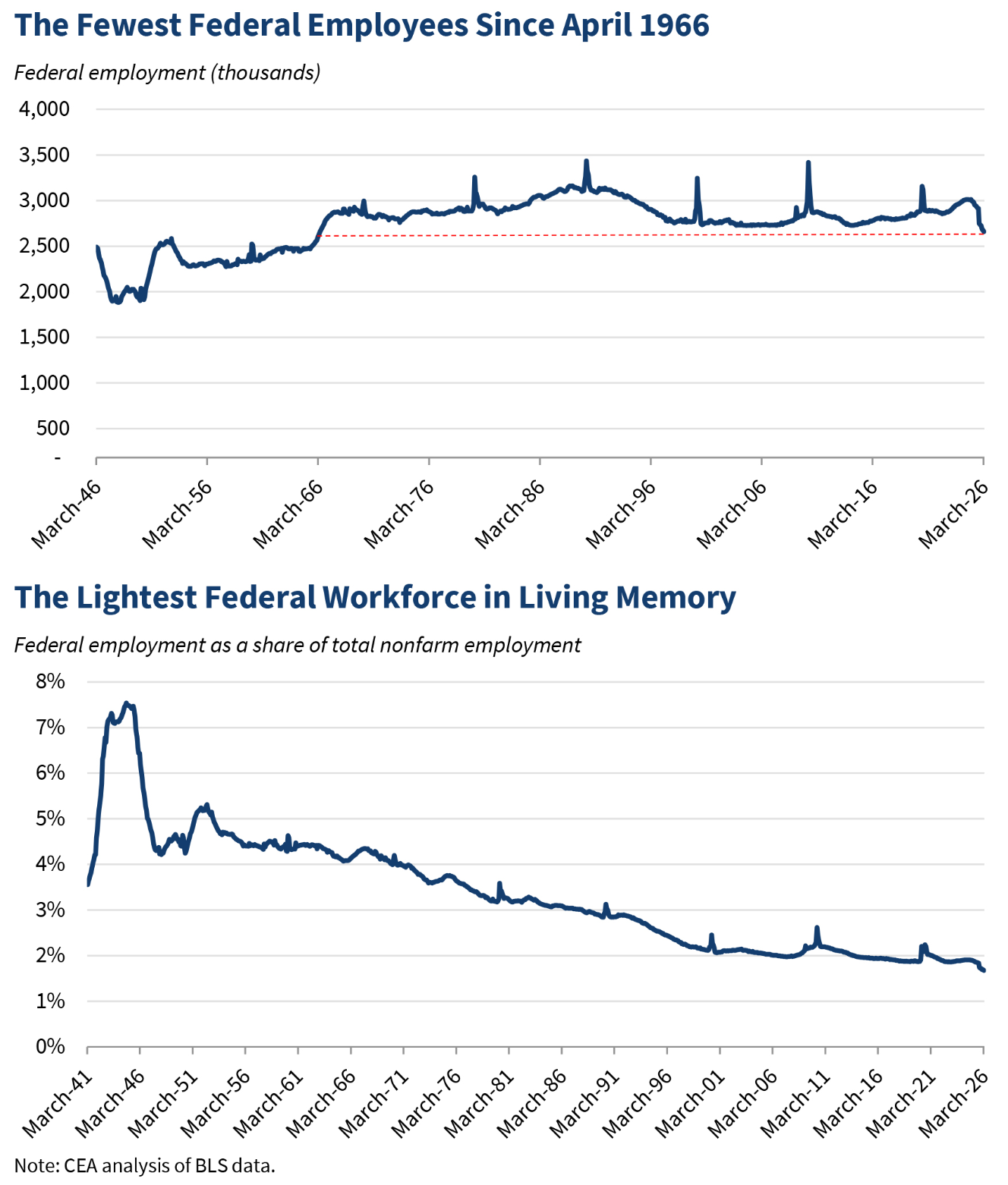 댓글 불러오는 중... - Apr 03, 2026, 03:32 PM[EN] Under President Trump, the federal workforce has been reduced to its smallest level since 1966 — the lowest share of the total labor force in over a century. [KO] 트럼프 대통령 하에서 연방 노동력은 1966년 이후 가장 작은 수준으로 감소했습니다. 이는 지난 한 세기 동안 전체 노동력에서 가장 낮은 비율입니다.💬 22🔁 158⭐ 364