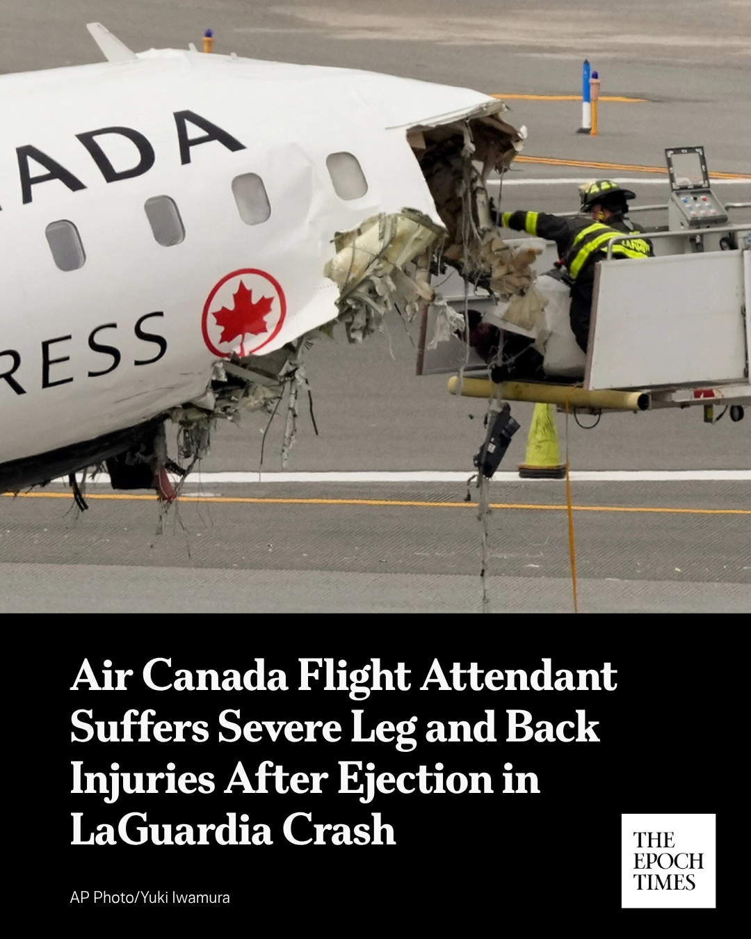 댓글 불러오는 중... - Mar 30, 2026, 04:05 PM[EN] 🚨 𝐀𝐢𝐫 𝐂𝐚𝐧𝐚𝐝𝐚 𝐅𝐥𝐢𝐠𝐡𝐭 𝐀𝐭𝐭𝐞𝐧𝐝𝐚𝐧𝐭 𝐒𝐮𝐟𝐟𝐞𝐫𝐬 𝐒𝐞𝐯𝐞𝐫𝐞 𝐋𝐞𝐠 𝐚𝐧𝐝 𝐁𝐚𝐜𝐤 𝐈𝐧𝐣𝐮𝐫𝐢𝐞𝐬 𝐀𝐟𝐭𝐞𝐫 𝐄𝐣𝐞𝐜𝐭𝐢𝐨𝐧 𝐢𝐧 𝐋𝐚𝐆𝐮𝐚𝐫𝐝𝐢𝐚 𝐂𝐫𝐚𝐬𝐡Solange Tremblay was “conscious” when the seat she was strapped to was ejected more than 320 feet after Air Canada Express Flight 8646 slammed into a fire truck, her daughter Sarah Lépine wrote in a GoFundMe set up to help her mother during recovery.Read more👇https://theepochtim.es/aj5hdp [KO] 🚨 에어캐나다 승무원, LaGuardia 충돌사고에서 탈출 후 심각한 다리와 허리 부상을 입다Solange Tremblay는 에어캐나다 익스프레스 8646편이 소방차와 충돌한 후 그녀가 묶인 좌석이 320피트 이상 떨어져 나갔을 때 "의식이 있었습니다"라고 그녀의 딸 Sarah Lépine은 회복하는 동안 어머니를 돕기 위해 GoFundMe 설정에 썼습니다. 자세히보기👇 https://theepochtim.es/aj5hdp💬 5🔁 28⭐ 55