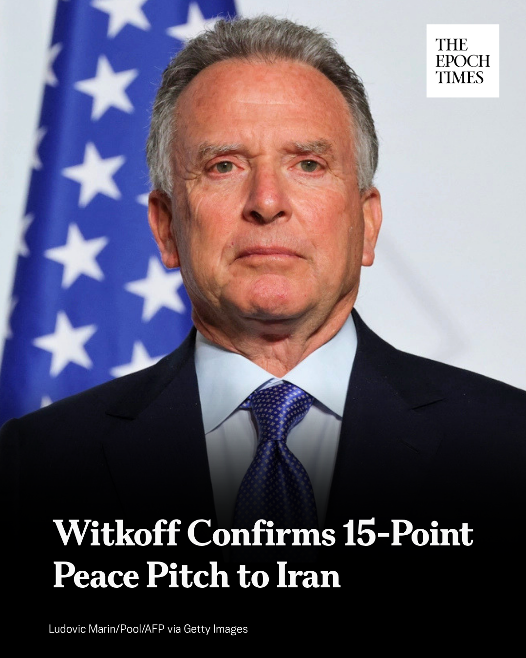 댓글 불러오는 중... - Mar 26, 2026, 08:25 PM[EN] 🚨 𝐖𝐢𝐭𝐤𝐨𝐟𝐟 𝐂𝐨𝐧𝐟𝐢𝐫𝐦𝐬 𝟏𝟓-𝐏𝐨𝐢𝐧𝐭 𝐏𝐞𝐚𝐜𝐞 𝐏𝐢𝐭𝐜𝐡 𝐭𝐨 𝐈𝐫𝐚𝐧The special presidential envoy declined to specify the peace terms the Trump administration has offered Tehran.Read more👇https://theepochtim.es/j2m0rz [KO] 🚨 위트코프, 이란에 대한 15가지 평화 제안 확인 대통령 특사는 트럼프 행정부가 테헤란에 제안한 평화 조건을 구체적으로 밝히기를 거부했습니다.자세히 보기👇 https://theepochtim.es/j2m0rz💬 6🔁 36⭐ 131