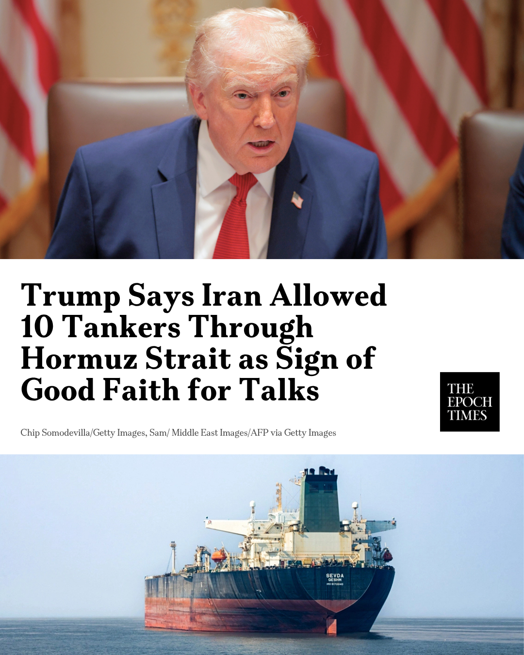 댓글 불러오는 중... - Mar 26, 2026, 10:07 PM[EN] 🚨 𝐓𝐫𝐮𝐦𝐩 𝐒𝐚𝐲𝐬 𝐈𝐫𝐚𝐧 𝐀𝐥𝐥𝐨𝐰𝐞𝐝 𝟏𝟎 𝐓𝐚𝐧𝐤𝐞𝐫𝐬 𝐓𝐡𝐫𝐨𝐮𝐠𝐡 𝐇𝐨𝐫𝐦𝐮𝐳 𝐒𝐭𝐫𝐚𝐢𝐭 𝐚𝐬 𝐒𝐢𝐠𝐧 𝐨𝐟 𝐆𝐨𝐨𝐝 𝐅𝐚𝐢𝐭𝐡 𝐟𝐨𝐫 𝐓𝐚𝐥𝐤𝐬‘I guess we’re dealing with the right people,’ President Donald Trump said at a Cabinet meeting.Read more👇https://theepochtim.es/vf0adc [KO] 🚨 트럼프, 이란이 회담에 대한 선의의 표시로 호르무즈 해협을 통과하는 유조선 10척을 허용했다고 도널드 트럼프 대통령이 내각 회의에서 말했습니다. https://theepochtim.es/vf0adc💬 23🔁 51⭐ 180