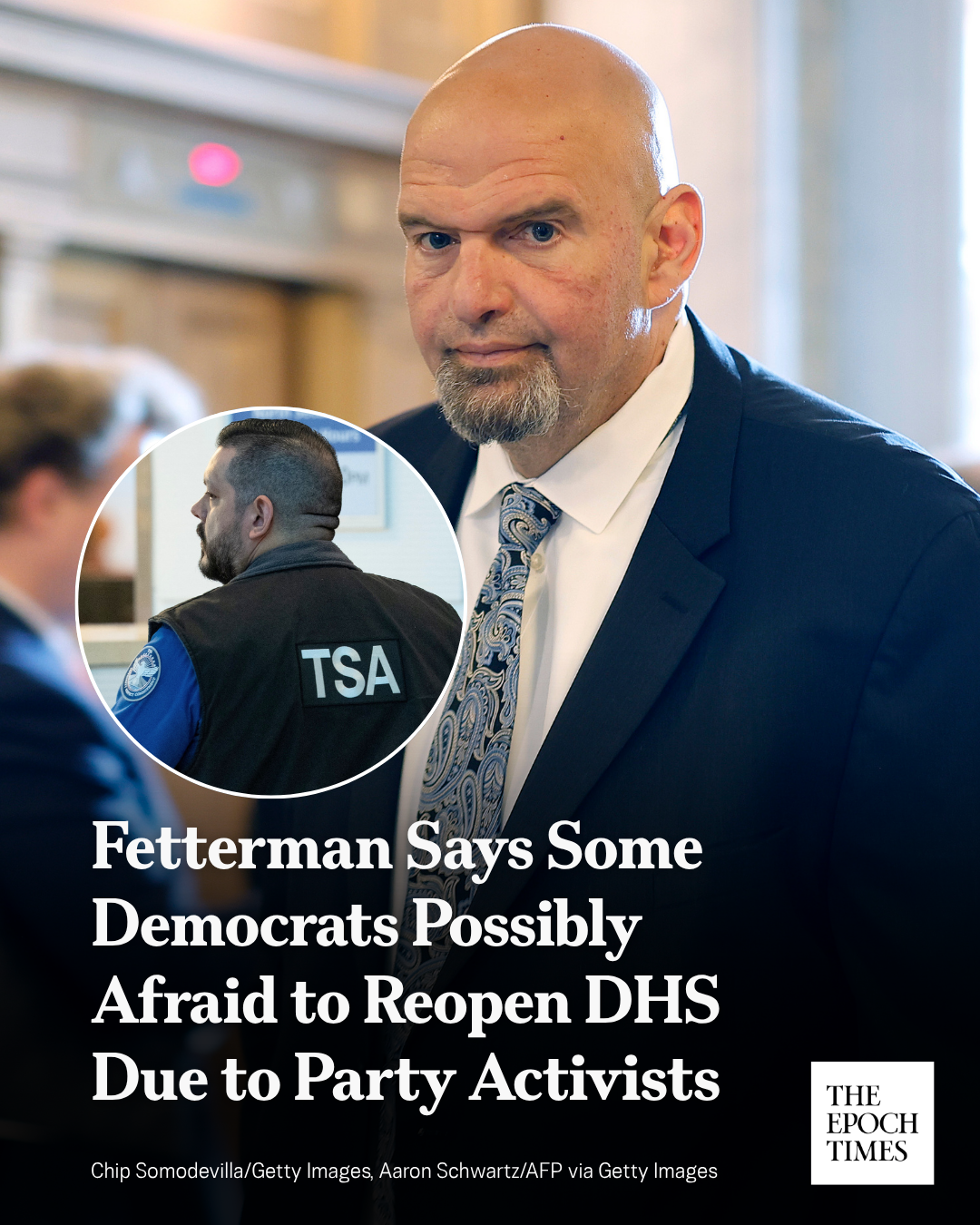 댓글 불러오는 중... - Mar 26, 2026, 10:25 PM[EN] 𝐅𝐞𝐭𝐭𝐞𝐫𝐦𝐚𝐧 𝐒𝐚𝐲𝐬 𝐒𝐨𝐦𝐞 𝐃𝐞𝐦𝐨𝐜𝐫𝐚𝐭𝐬 𝐏𝐨𝐬𝐬𝐢𝐛𝐥𝐲 𝐀𝐟𝐫𝐚𝐢𝐝 𝐭𝐨 𝐑𝐞𝐨𝐩𝐞𝐧 𝐃𝐇𝐒 𝐃𝐮𝐞 𝐭𝐨 𝐏𝐚𝐫𝐭𝐲 𝐀𝐜𝐭𝐢𝐯𝐢𝐬𝐭𝐬The Pennsylvania Democrat says some in his party could be caving to activist pressure not to fund the DHS, as Senate negotiations head into their sixth week.Read more👇https://theepochtim.es/x936uu [KO] Fetterman은 일부 민주당원들이 당 활동가들로 인해 DHS 재개를 두려워할 가능성이 있다고 말합니다. 펜실베니아 민주당원은 상원 협상이 6주차로 접어들면서 자신의 당 중 일부가 DHS에 자금을 지원하지 말라는 활동가들의 압력에 굴복할 수 있다고 말했습니다. 자세히보기👇 https://theepochtim.es/x936uu💬 30🔁 70⭐ 147