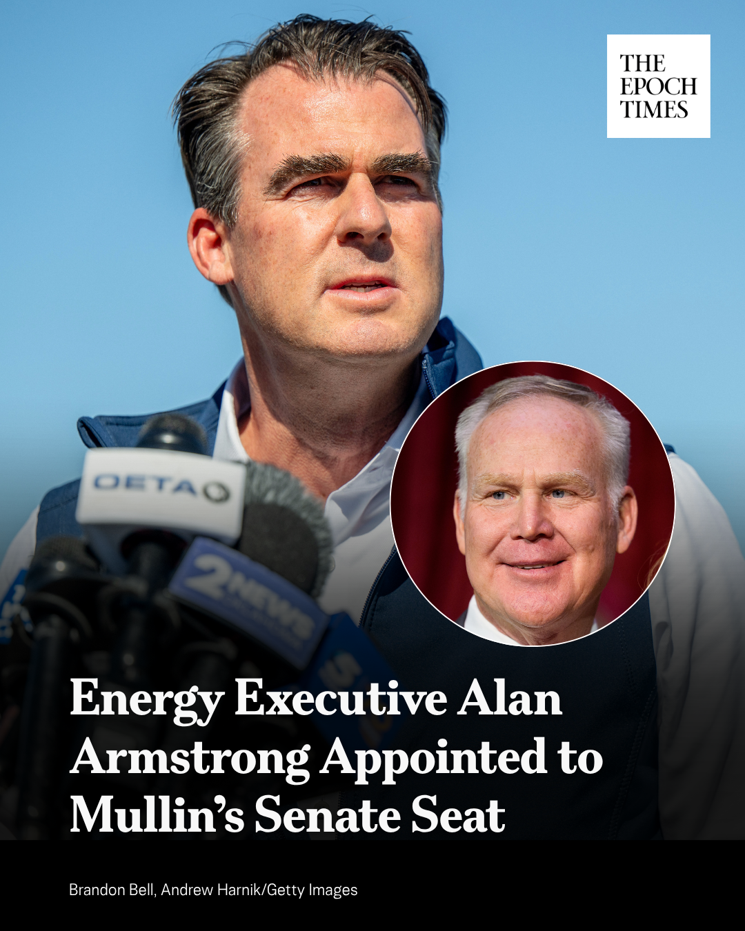 댓글 불러오는 중... - Mar 25, 2026, 12:00 AM[EN] 🚨 𝐄𝐧𝐞𝐫𝐠𝐲 𝐄𝐱𝐞𝐜𝐮𝐭𝐢𝐯𝐞 𝐀𝐥𝐚𝐧 𝐀𝐫𝐦𝐬𝐭𝐫𝐨𝐧𝐠 𝐀𝐩𝐩𝐨𝐢𝐧𝐭𝐞𝐝 𝐭𝐨 𝐌𝐮𝐥𝐥𝐢𝐧’𝐬 𝐒𝐞𝐧𝐚𝐭𝐞 𝐒𝐞𝐚𝐭The appointment comes amid a politically tense period for Gov. Stitt, who is set to leave office in January 2027.Read more 👇https://theepochtim.es/hipkes [KO] 🚨 에너지 담당 임원 Alan Armstrong, Mullin의 상원 의석에 임명이 임명은 2027년 1월에 퇴임할 예정인 Stitt 주지사의 정치적으로 긴장된 기간 중에 이루어졌습니다.자세히 보기 👇 https://theepochtim.es/hipkes💬 4🔁 11⭐ 29