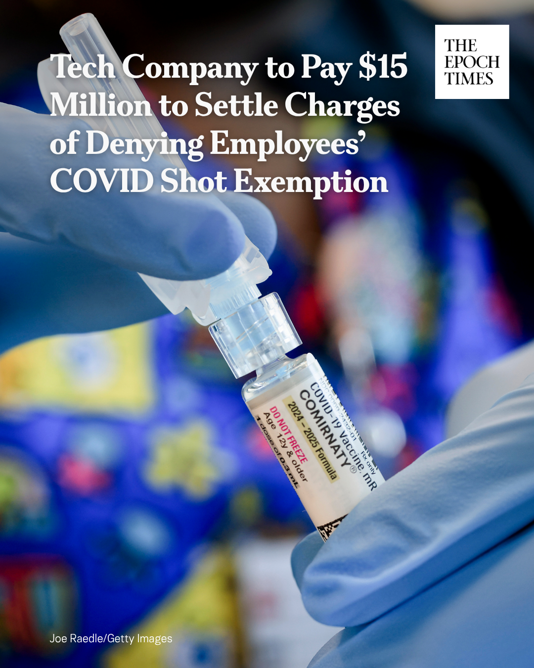 댓글 불러오는 중... - Mar 25, 2026, 11:30 AM[EN] 🚨 𝐓𝐞𝐜𝐡 𝐂𝐨𝐦𝐩𝐚𝐧𝐲 𝐭𝐨 𝐏𝐚𝐲 $𝟏𝟓 𝐌𝐢𝐥𝐥𝐢𝐨𝐧 𝐭𝐨 𝐒𝐞𝐭𝐭𝐥𝐞 𝐂𝐡𝐚𝐫𝐠𝐞𝐬 𝐨𝐟 𝐃𝐞𝐧𝐲𝐢𝐧𝐠 𝐄𝐦𝐩𝐥𝐨𝐲𝐞𝐞𝐬’ 𝐂𝐎𝐕𝐈𝐃 𝐒𝐡𝐨𝐭 𝐄𝐱𝐞𝐦𝐩𝐭𝐢𝐨𝐧The company was not named. The law requires employers to provide reasonable accommodations for sincerely held religious beliefs.Read more:https://theepochtim.es/7p4set [KO] 🚨 기술 회사는 직원의 코로나19 예방 주사 면제를 거부한 혐의를 해결하기 위해 1,500만 달러를 지불할 예정입니다. 회사 이름은 지정되지 않았습니다. 법에 따라 고용주는 진심으로 종교적 신념을 갖고 있는 경우 합당한 편의를 제공해야 합니다.자세히 알아보기: https://theepochtim.es/7p4set💬 13🔁 73⭐ 184