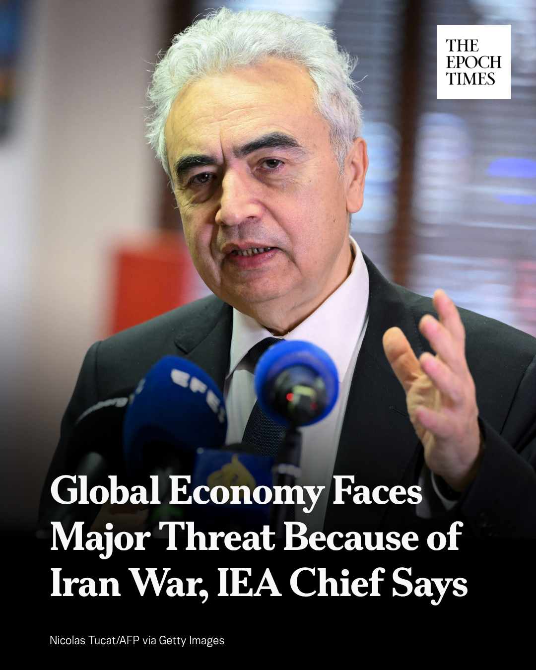 댓글 불러오는 중... - Mar 23, 2026, 06:45 PM[EN] 🚨 𝐆𝐥𝐨𝐛𝐚𝐥 𝐄𝐜𝐨𝐧𝐨𝐦𝐲 𝐅𝐚𝐜𝐞𝐬 𝐌𝐚𝐣𝐨𝐫 𝐓𝐡𝐫𝐞𝐚𝐭 𝐁𝐞𝐜𝐚𝐮𝐬𝐞 𝐨𝐟 𝐈𝐫𝐚𝐧 𝐖𝐚𝐫, 𝐈𝐄𝐀 𝐂𝐡𝐢𝐞𝐟 𝐒𝐚𝐲𝐬“No country will be immune to the effects of this crisis if it continues to go in this direction,” IEA Executive Director Fatih Birol said at Australia’s National Press Club in Canberra.Read more👇https://theepochtim.es/jbr7x6 [KO] 🚨 이란 전쟁으로 인해 세계 경제가 큰 위협에 직면해 있다 IEA 사무총장은 “이 방향으로 계속 진행된다면 어느 나라도 이 위기의 영향에서 면역되지 않을 것”이라고 IEA 사무총장 파티 비롤(Fatih Birol)이 캔버라의 호주 내셔널 프레스 클럽에서 말했습니다.자세히 보기👇 https://theepochtim.es/jbr7x6💬 18🔁 16⭐ 30