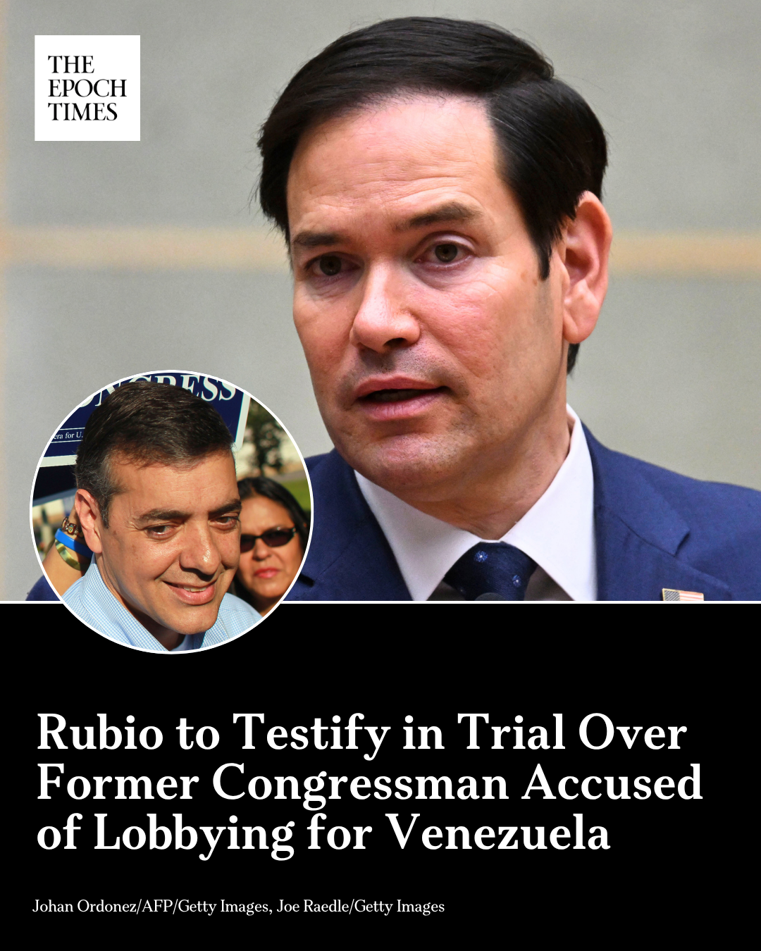 댓글 불러오는 중... - Mar 23, 2026, 07:25 PM[EN] 🏛️ 𝐑𝐮𝐛𝐢𝐨 𝐭𝐨 𝐓𝐞𝐬𝐭𝐢𝐟𝐲 𝐢𝐧 𝐓𝐫𝐢𝐚𝐥 𝐎𝐯𝐞𝐫 𝐅𝐨𝐫𝐦𝐞𝐫 𝐂𝐨𝐧𝐠𝐫𝐞𝐬𝐬𝐦𝐚𝐧 𝐀𝐜𝐜𝐮𝐬𝐞𝐝 𝐨𝐟 𝐋𝐨𝐛𝐛𝐲𝐢𝐧𝐠 𝐟𝐨𝐫 𝐕𝐞𝐧𝐞𝐳𝐮𝐞𝐥𝐚The trial begins on Monday, with Rubio set to speak on Tuesday about his relationship with Rivera.Read more👇https://theepochtim.es/ecyipx [KO] 🏛️ 루비오, 베네수엘라 로비 혐의로 기소된 전 의원에 대한 재판에서 증언할 예정재판은 월요일에 시작되며, 루비오는 화요일에 리베라와의 관계에 대해 연설할 예정입니다.자세히 보기👇 https://theepochtim.es/ecyipx💬 2🔁 35⭐ 111