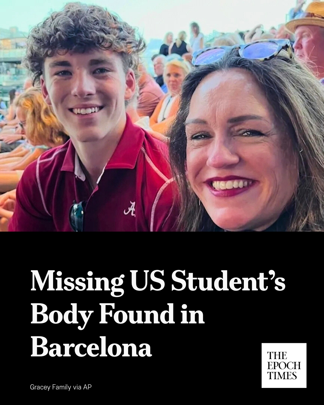 댓글 불러오는 중... - Mar 19, 2026, 09:45 PM[EN] 🚨 𝐌𝐢𝐬𝐬𝐢𝐧𝐠 𝐔𝐒 𝐒𝐭𝐮𝐝𝐞𝐧𝐭’𝐬 𝐁𝐨𝐝𝐲 𝐅𝐨𝐮𝐧𝐝 𝐢𝐧 𝐁𝐚𝐫𝐜𝐞𝐥𝐨𝐧𝐚The body of 20-year-old James “Jimmy” Gracey was found Thursday evening in the water off a Barcelona beach, the press office for Catalonia’s regional police in Barcelona told The Associated Press.Read more👇https://theepochtim.es/ijnizn [KO] 🚨 실종된 미국 학생 시신, 바르셀로나에서 발견20세 제임스 "지미" 그레이시의 시신이 목요일 저녁 바르셀로나 해변 앞바다에서 발견됐다고 바르셀로나 카탈로니아 지역 경찰 대변인이 AP통신에 말했습니다.자세히 보기👇 https://theepochtim.es/ijnizn💬 27🔁 31⭐ 58