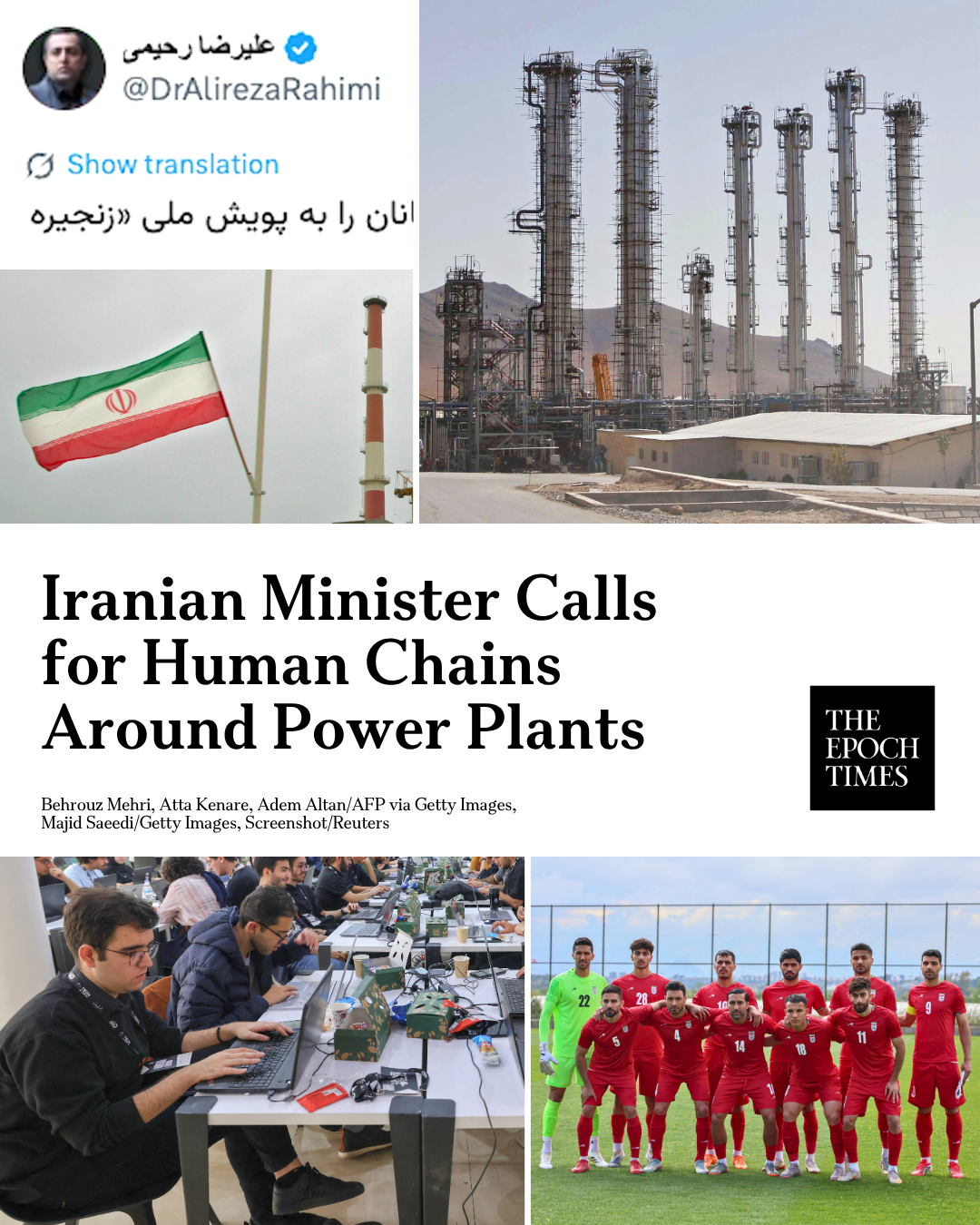 댓글 불러오는 중... - Apr 07, 2026, 06:05 PM[EN] 🚨 𝐈𝐫𝐚𝐧𝐢𝐚𝐧 𝐌𝐢𝐧𝐢𝐬𝐭𝐞𝐫 𝐂𝐚𝐥𝐥𝐬 𝐟𝐨𝐫 𝐇𝐮𝐦𝐚𝐧 𝐂𝐡𝐚𝐢𝐧𝐬 𝐀𝐫𝐨𝐮𝐧𝐝 𝐏𝐨𝐰𝐞𝐫 𝐏𝐥𝐚𝐧𝐭𝐬Iranian President Masoud Pezeshkian said that millions of citizens are ready to ’sacrifice their lives’ for the regime.Read more👇https://theepochtim.es/zzcezo [KO] 🚨 이란 장관, 발전소 주변에 인간 사슬 설치 촉구 마수드 페제쉬키안 이란 대통령은 수백만 명의 시민들이 정권을 위해 '자신의 생명을 희생'할 준비가 되어 있다고 말했습니다. 자세히보기👇 https://theepochtim.es/zzcezo💬 60🔁 36⭐ 55