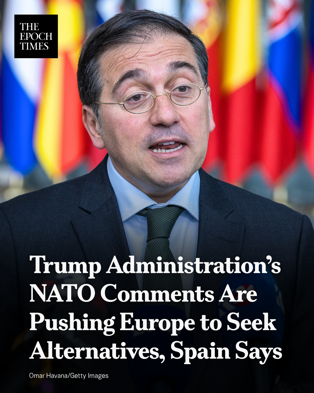 댓글 불러오는 중... - Apr 07, 2026, 07:05 PM[EN] 🌏 𝐓𝐫𝐮𝐦𝐩 𝐀𝐝𝐦𝐢𝐧𝐢𝐬𝐭𝐫𝐚𝐭𝐢𝐨𝐧’𝐬 𝐍𝐀𝐓𝐎 𝐂𝐨𝐦𝐦𝐞𝐧𝐭𝐬 𝐀𝐫𝐞 𝐏𝐮𝐬𝐡𝐢𝐧𝐠 𝐄𝐮𝐫𝐨𝐩𝐞 𝐭𝐨 𝐒𝐞𝐞𝐤 𝐀𝐥𝐭𝐞𝐫𝐧𝐚𝐭𝐢𝐯𝐞𝐬, 𝐒𝐩𝐚𝐢𝐧 𝐒𝐚𝐲𝐬Madrid’s foreign minister said that recent remarks from Washington were forcing Europeans to ’take a leap in terms of our sovereignty and defense.’Read more👇https://theepochtim.es/w5u71w [KO] 🌏 트럼프 행정부의 NATO 논평은 유럽이 대안을 찾도록 압력을 가하고 있으며, 스페인은 마드리드 외무장관이 최근 워싱턴의 발언이 유럽인들이 '우리의 주권과 국방 측면에서 도약'하도록 강요하고 있다고 말했습니다. 자세히보기👇 https://theepochtim.es/w5u71w💬 73🔁 44⭐ 113
