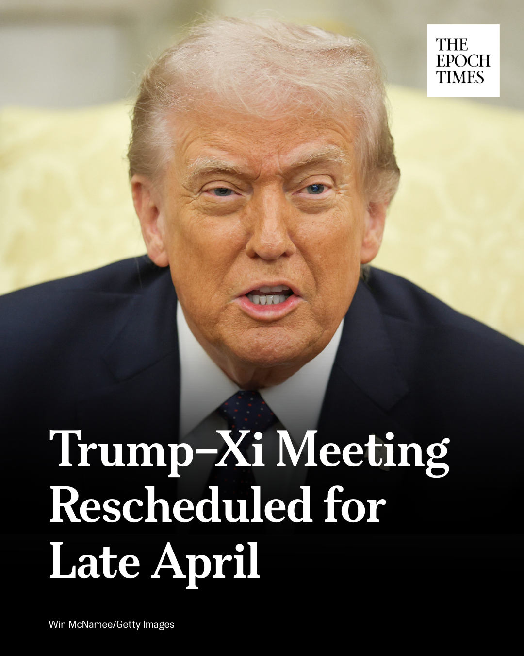 - Mar 17, 2026, 10:05 PM[EN] 🚨 𝐓𝐫𝐮𝐦𝐩–𝐗𝐢 𝐌𝐞𝐞𝐭𝐢𝐧𝐠 𝐑𝐞𝐬𝐜𝐡𝐞𝐝𝐮𝐥𝐞𝐝 𝐟𝐨𝐫 𝐋𝐚𝐭𝐞 𝐀𝐩𝐫𝐢𝐥The U.S. president originally had a trip to China scheduled to begin at the end of this month.Read more👇https://theepochtim.es/m9u6vj [KO] 🚨 트럼프-시 회담, 4월 말로 일정 변경미국 대통령은 원래 이달 말부터 중국을 방문할 예정이었습니다.자세히 보기👇 https://theepochtim.es/m9u6vj💬 8🔁 31⭐ 87