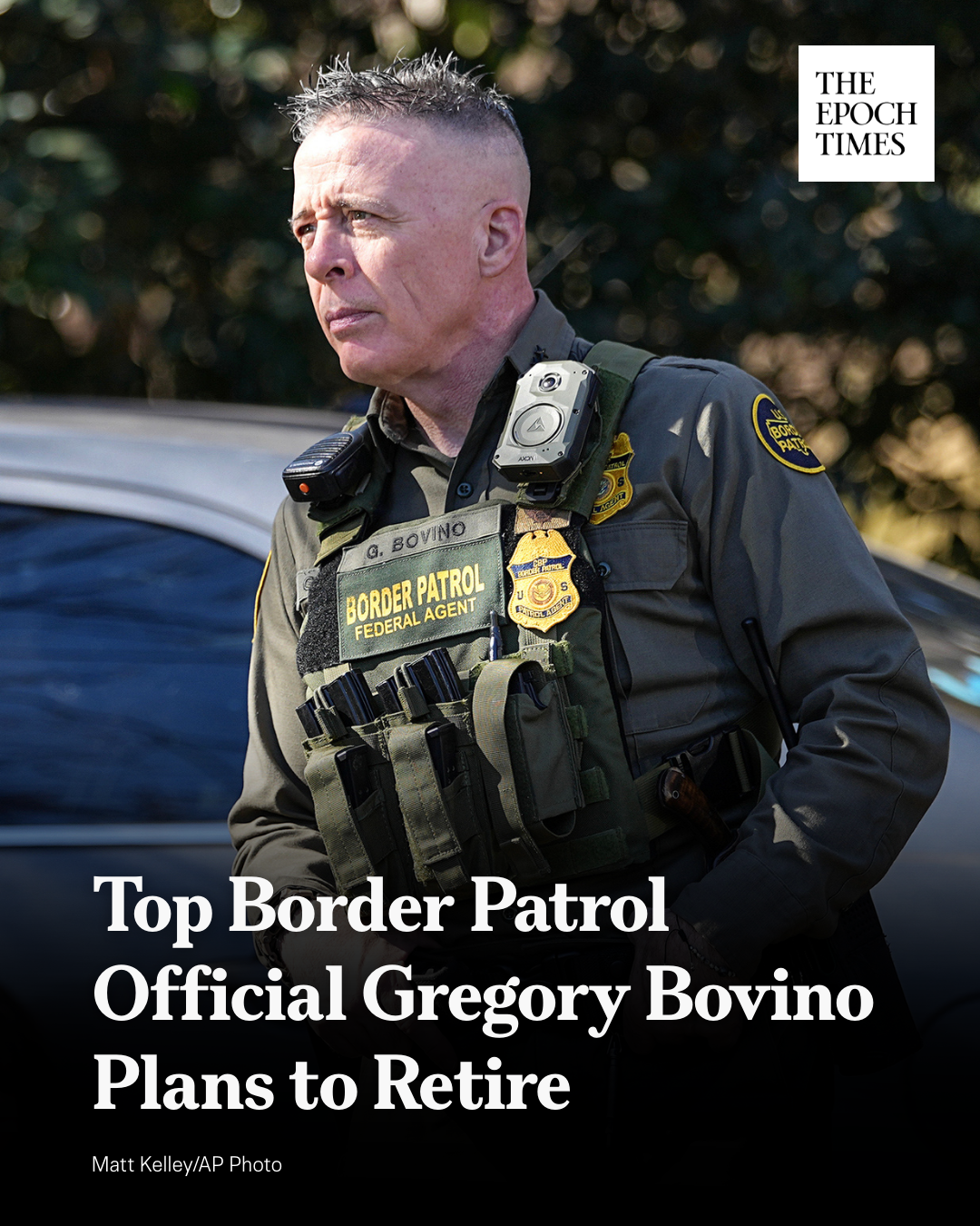 댓글 불러오는 중... - Mar 17, 2026, 04:45 PM[EN] 🚨 𝐓𝐨𝐩 𝐁𝐨𝐫𝐝𝐞𝐫 𝐏𝐚𝐭𝐫𝐨𝐥 𝐎𝐟𝐟𝐢𝐜𝐢𝐚𝐥 𝐆𝐫𝐞𝐠𝐨𝐫𝐲 𝐁𝐨𝐯𝐢𝐧𝐨 𝐏𝐥𝐚𝐧𝐬 𝐭𝐨 𝐑𝐞𝐭𝐢𝐫𝐞Bovino was removed from his leading role in Operation Metro Surge in Minneapolis after federal agents fatally shot two U.S. citizens.Read more👇https://theepochtim.es/2x18d9 [KO] 🚨 최고 국경 순찰대원인 Gregory Bovino의 은퇴 계획Bovino는 연방 요원이 미국 시민 2명을 사살한 후 미니애폴리스의 Metro Surge 작전에서 주역에서 제외되었습니다.자세히 보기👇 https://theepochtim.es/2x18d9💬 24🔁 36⭐ 76