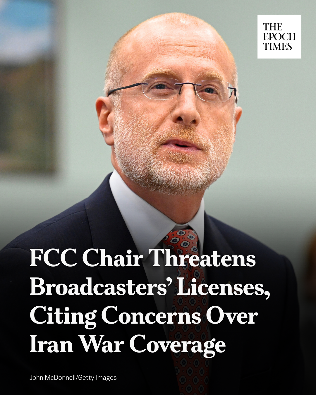 댓글 불러오는 중... - Mar 16, 2026, 11:30 AM[EN] 🚨 𝐅𝐂𝐂 𝐂𝐡𝐚𝐢𝐫 𝐓𝐡𝐫𝐞𝐚𝐭𝐞𝐧𝐬 𝐁𝐫𝐨𝐚𝐝𝐜𝐚𝐬𝐭𝐞𝐫𝐬’ 𝐋𝐢𝐜𝐞𝐧𝐬𝐞𝐬, 𝐂𝐢𝐭𝐢𝐧𝐠 𝐂𝐨𝐧𝐜𝐞𝐫𝐧𝐬 𝐎𝐯𝐞𝐫 𝐈𝐫𝐚𝐧 𝐖𝐚𝐫 𝐂𝐨𝐯𝐞𝐫𝐚𝐠𝐞‘The law is clear. Broadcasters must operate in the public interest, and they will lose their licenses if they do not,’ the FCC chair said.Read more:https://theepochtim.es/tfsk5i [KO] 🚨 FCC 의장, 이란 전쟁 보도에 대한 우려를 언급하며 방송사의 면허를 위협 '법은 분명합니다. 방송사는 공익을 위해 운영해야 하며 그렇지 않으면 라이선스를 잃게 될 것입니다'라고 FCC 의장은 말했습니다. https://theepochtim.es/tfsk5i💬 53🔁 134⭐ 355