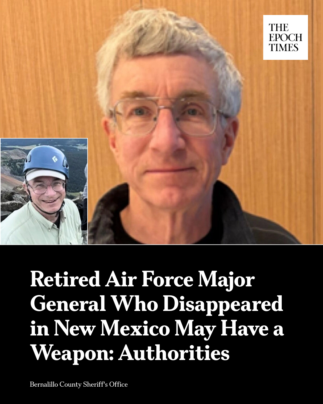 댓글 불러오는 중... - Mar 13, 2026, 08:25 PM[EN] 🚨 𝐑𝐞𝐭𝐢𝐫𝐞𝐝 𝐀𝐢𝐫 𝐅𝐨𝐫𝐜𝐞 𝐌𝐚𝐣𝐨𝐫 𝐆𝐞𝐧𝐞𝐫𝐚𝐥 𝐖𝐡𝐨 𝐃𝐢𝐬𝐚𝐩𝐩𝐞𝐚𝐫𝐞𝐝 𝐢𝐧 𝐍𝐞𝐰 𝐌𝐞𝐱𝐢𝐜𝐨 𝐌𝐚𝐲 𝐇𝐚𝐯𝐞 𝐚 𝐖𝐞𝐚𝐩𝐨𝐧: 𝐀𝐮𝐭𝐡𝐨𝐫𝐢𝐭𝐢𝐞𝐬Authorities reported finding a shirt left about one mile away from the house that might belong to the missing man.Read more👇https://theepochtim.es/bq3oo5 [KO] 🚨 뉴멕시코에서 실종된 퇴역 공군 소장은 무기를 가지고 있을 수 있습니다: 당국 당국은 실종자의 소유일 수 있는 집에서 약 1마일 떨어진 곳에 남겨진 셔츠를 발견했다고 보고했습니다.자세히 보기👇 https://theepochtim.es/bq3oo5💬 10🔁 37⭐ 65