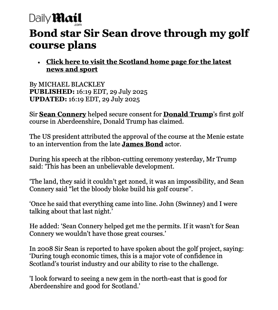 💬 442🔁 2744⭐ 11037 - @realDonaldTrumpNov 14, 2025, 05:43 PM[EN] Blast from the past!https://www.express.co.uk/celebrity-news/71740/Connery-raves-over-Trump-s-Scotland-project [KO] 과거로부터의 폭발!https://www.express.co.uk/celebrity-news/71740/Connery-raves-over-Trump-s-Scotland-project