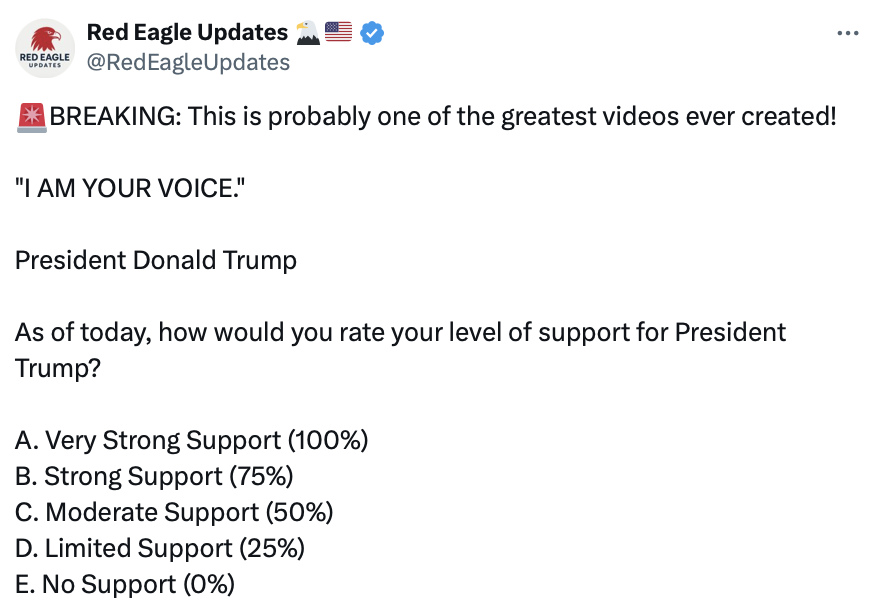 - @realDonaldTrumpFeb 11, 2026, 11:12 AM[EN] RT: https://truthsocial.com/users/realDonaldTrump/statuses/116051692757983702A must watch. 100% Correct. MAGA! [KO] RT: 꼭 시청해야 합니다. 100% 정확합니다. 마가! https://truthsocial.com/users/realDonaldTrump/statuses/116051692757983702A💬 983🔁 4038⭐ 11871