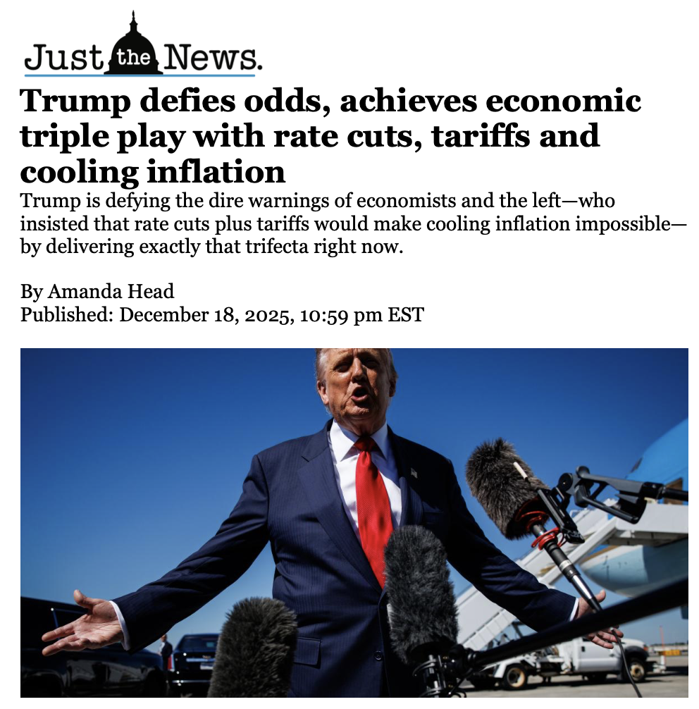 - @realDonaldTrumpDec 19, 2025, 04:30 AM[EN] It’s all happening!!!https://justthenews.com/government/white-house/trump-defies-odds-achieves-economic-hat-trick-rate-cuts-tariffs-and-cooling [KO] 모든 일이 일어나고 있습니다!!!https://justthenews.com/government/white-house/trump-defies-odds-achieves-economic-hat-trick-rate-cuts-tariffs-and-cooling