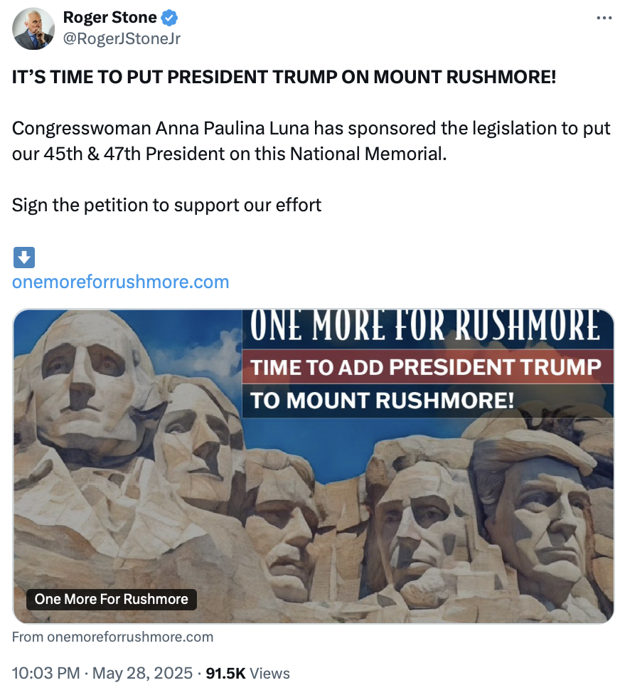 - @realDonaldTrumpFeb 06, 2026, 03:47 AM[EN] Wow. So nice. Thank you Anna Paulina! President DJThttps://www.onemoreforrushmore.com [KO] 우와. 정말 좋아요. 안나 파울리나에게 감사드립니다! DJT 회장 https://www.onemoreforrushmore.com💬 468🔁 2054⭐ 6864