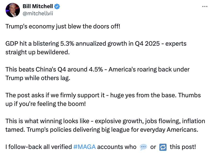 - @realDonaldTrumpFeb 05, 2026, 11:05 AM💬 177🔁 1951⭐ 7995