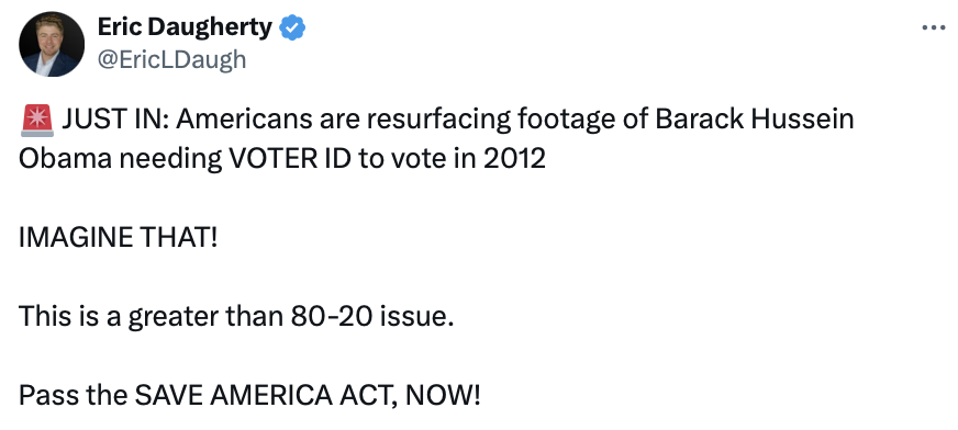 - @realDonaldTrumpFeb 05, 2026, 11:07 AM[EN] Jim Banks Calls for Passage of SAVE America Act to Require Proof of Citizenship to Vote: https://www.breitbart.com/politics/2026/02/04/jim-banks-calls-for-passage-save-america-act-require-proof-citizenship-vote/ [KO] Jim Banks는 투표 시 시민권 증명을 요구하는 SAVE America 법안의 통과를 요구합니다: https://www.breitbart.com/politics/2026/02/04/jim-banks-calls-for-passage-save-america-act-require-proof-citizenship-vote/💬 1292🔁 5189⭐ 18075